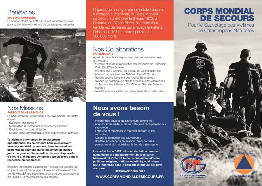 Découvrez la nouvelle plaquette 2015 du Corps Mondial de Secours, ONG spécialisée en Urban Search And Rescue